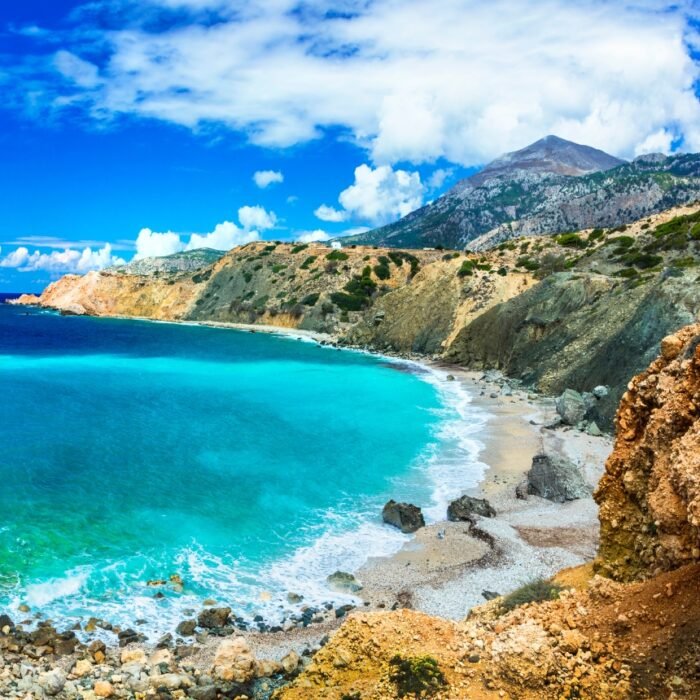 Crete island boasts beautiful beaches and stunning mountain landscapes.